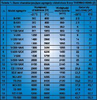W celu ułatwienia doboru agregatu chłodniczego producenci podają orientacyjne gabaryty zabudowy (objętość lub długość), wewnątrz której dane urządzenie chłodnicze jest w stanie utrzymać wymaganą temperaturę. Przykładowe wytyczne firmy THERMO KING przedstawiono w tabeli 1. Zawarte w tabeli dane dotyczą agregatów przeznaczonych do samochodów dostawczych (wiersze 1 12) oraz samochodów ciężarowych (wiersze 13-20). W przypadku tej drugiej grupy agregatów, jako parametr ułatwiający dobór, producent podaje orientacyjną długość nadwozia. Na potrzeby niniejszego opracowania (zbiorcze zestawienie rys. 1) oszacowano na podstawie podanej długości objętość nadwozia przyjmując szerokość 2,48 m oraz wysokość 2,35 m.