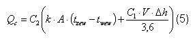 Qp - zapotrzebowanie wydajności chłodniczej związane z przenikaniem ciepła [W],