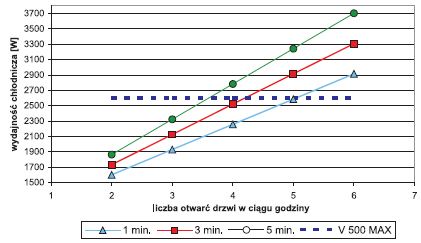 - przy dwukrotnym i trzykrotnym otwarciu drzwi w ciągu godziny agregat V 500 MAX niweluje zyski ciepła nawet w przypadku, gdy średni czas otwarcia drzwi wynosi 5 minut;