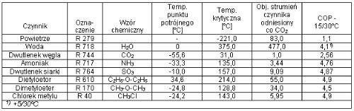 Tabela 1. Niektóre właściwości czynników chłodniczych używanych w XIX wieku