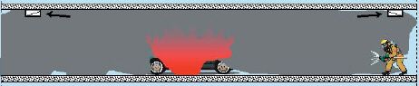 Rys. 2 Porównanie działania wentylacji kanałowej i strumieniowej – w pełni rozwinięty pożar (przy działaniu wentylacji kanałowej)