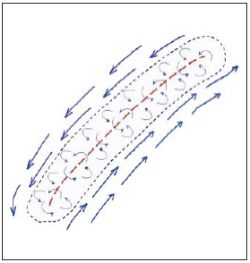 Rys. 5 Strefa cyrkulacji wokół granicy rozdzielającej strumienie powietrza przemieszczające się w przeciwnych kierunkach