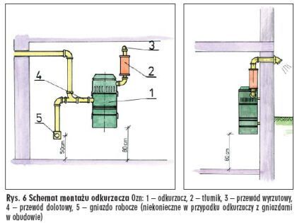 Powinno być suche i przewiewne, a jednocześnie dostatecznie oddalone od pomieszczeń mieszkalnych. Możemy na nie wykorzystać garaż, wentylowaną piwnicę lub inne pomieszczenie gospodarcze. Pomieszczenie to musi być odpowiednio wysokie, aby umieszczony w nim odkurzacz był zamontowany w sposób umożliwiający opróżnianie zbiornika (rys. 6).