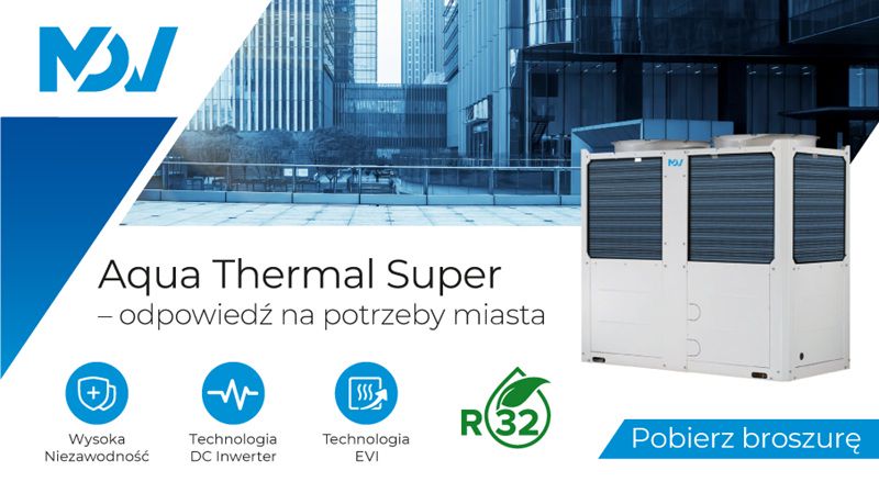 Komercyjna pompa ciepła nowej generacji dla wymagających inwestycji W czasach rosnących kosztów energii oraz konieczności wdrażania rozwiązań proekologicznych, wybór odpowiedniego systemu ogrzewania, chłodzenia i przygotowania ciepłej wody użytkowej (CWU) staje się kluczowy dla każdej inwestycji. Aqua Thermal Super - komercyjna pompa ciepła marki MDV, to zaawansowane technologicznie rozwiązanie o mocy od 50 do aż 140 kW, które spełnia te wymagania w pełni, oferując jednocześnie komfort, niezawodność i wysoką efektywność energetyczną.