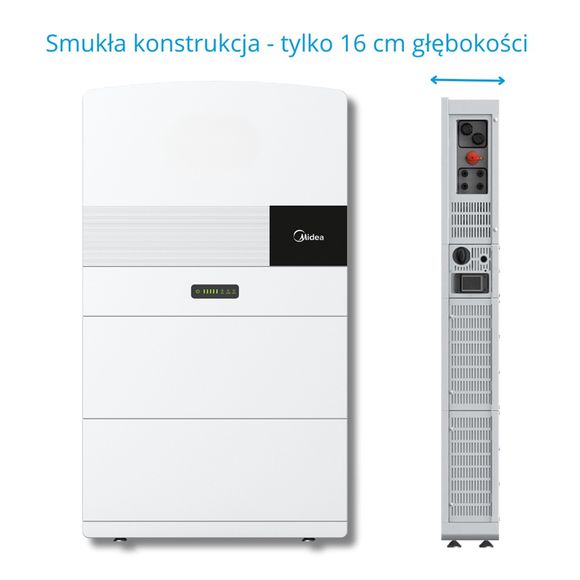 Wyróżnikiem systemu Midea RESS All in One jest kompaktowa konstrukcja o głębokości zaledwie 16 cm, zastosowanie baterii LiFePO4, stopień ochrony obudowy IP65 oraz czas przełączania poniżej 20 ms. Dodatkowo urządzenie objęte jest 10-letnią gwarancją producenta, co potwierdza jego niezawodność i trwałość.