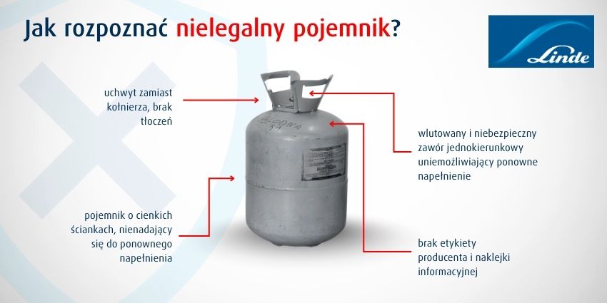 • Nielegalny pojemnik nie zawiera etykiety F-gazowej, etykiety producenta i naklejki informacyjnej.