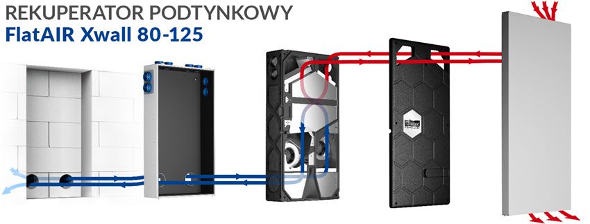 FlatAIR-Xwall to rekuperator decentralny przeznaczony do instalacji bezkanałowych. Urządzenie łączy kompaktową konstrukcję z technologią entalpicznego wymiennika przeciwprądowego, znaną z systemów centralnych. Umożliwia realizację wentylacji mechanicznej z odzyskiem ciepła w obiektach, gdzie wcześniej było to utrudnione. Brak rozbudowanej infrastruktury kanałowej upraszcza montaż i skraca czas realizacji instalacji.