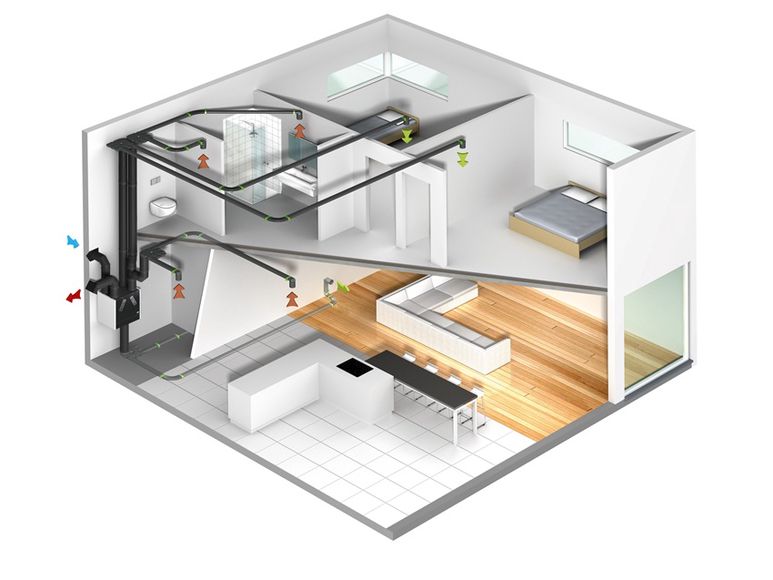 Wentylacja dwustrefowa zapewnia idealne połączenie energooszczędności z komfortem i jako jedna w warunkach instalacji domu jednorodzinnego otrzymuje etykietę klasy A+ zgodnie z wytycznymi Ecodesign - dyrektywy dotyczącej efektywności energetycznej.