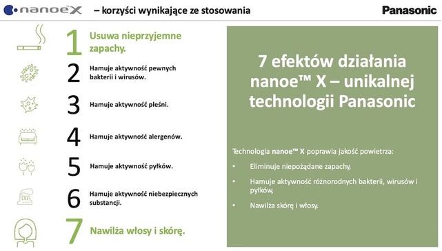 Panasonic wskazuje, że technologia nanoe™ X, wykorzystująca rodniki hydroksylowe, może wspierać neutralizację zanieczyszczeń w powietrzu i na powierzchniach.