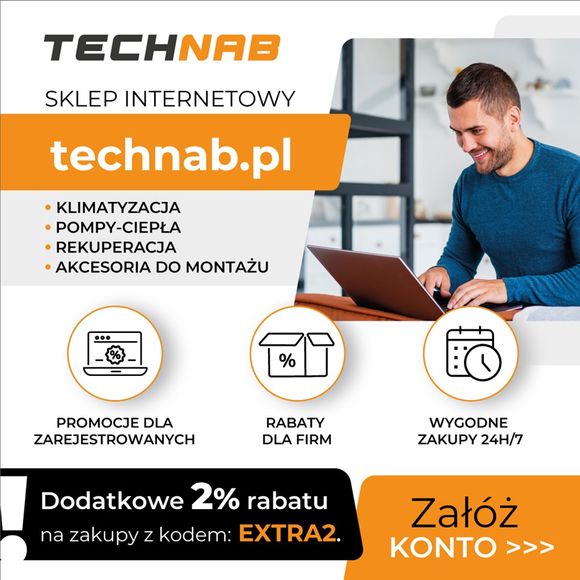 Technab.pl to nowo uruchomiony sklep internetowy dedykowany firmom instalacyjnym z branży elektrycznej, sanitarnej i HVAC. W ofercie już teraz znajduje się ponad 300 produktów, obejmujących m.in. klimatyzatory, pompy ciepła, rekuperację, magazyny energii oraz wszelkie akcesoria montażowe. Każdego miesiąca asortyment będzie dynamicznie rozszerzany o kolejne setki produktów!