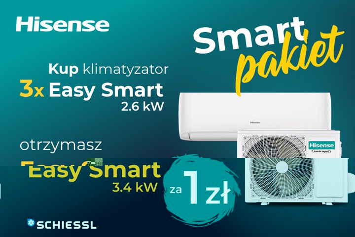 - Promocja dotyczy zakupu kompletów RAC jednostek ściennych Hisense serii Easy Smart.