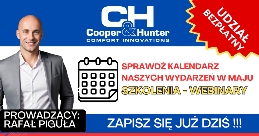 - 14 maja 2025 / WEBINAR - Jak zaprojektować system VRF CHV Cooper&Hunter?