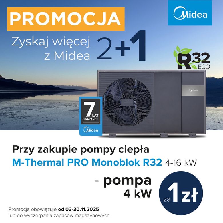 Zyskaj więcej z Midea 2+1 za 1 zł - jesienna promocja na pompy ciepła M-Thermal monoblok R32 PRO
